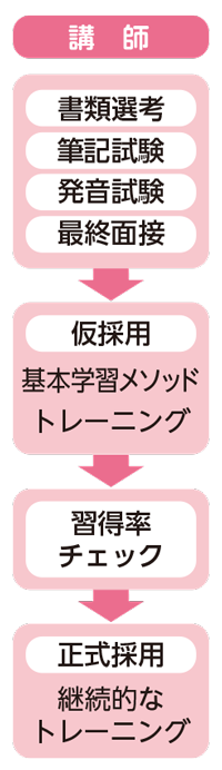 CAEAの講師になるには、厳しい採用試験をクリアしたうえで、常に「英語を教える力」を磨き続ける研修を受けています。