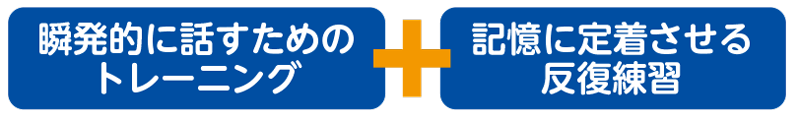 「頭では理解できる英語」を「実践で使えるようにする」ために 瞬発的に話すためのトレーニングと記憶に定着させる反復練習が必要です。スピーキングメソッドを独自にアレンジして活用することで初心者から上級者まで効果が実証されています。
